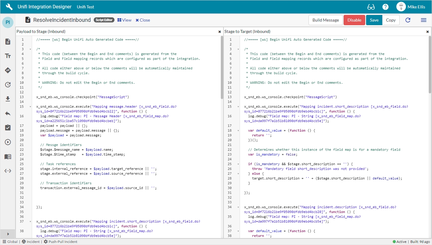 Now that we’ve configured the Field records for the ResolveIncidentInbound message, we are ready to build our message scripts.