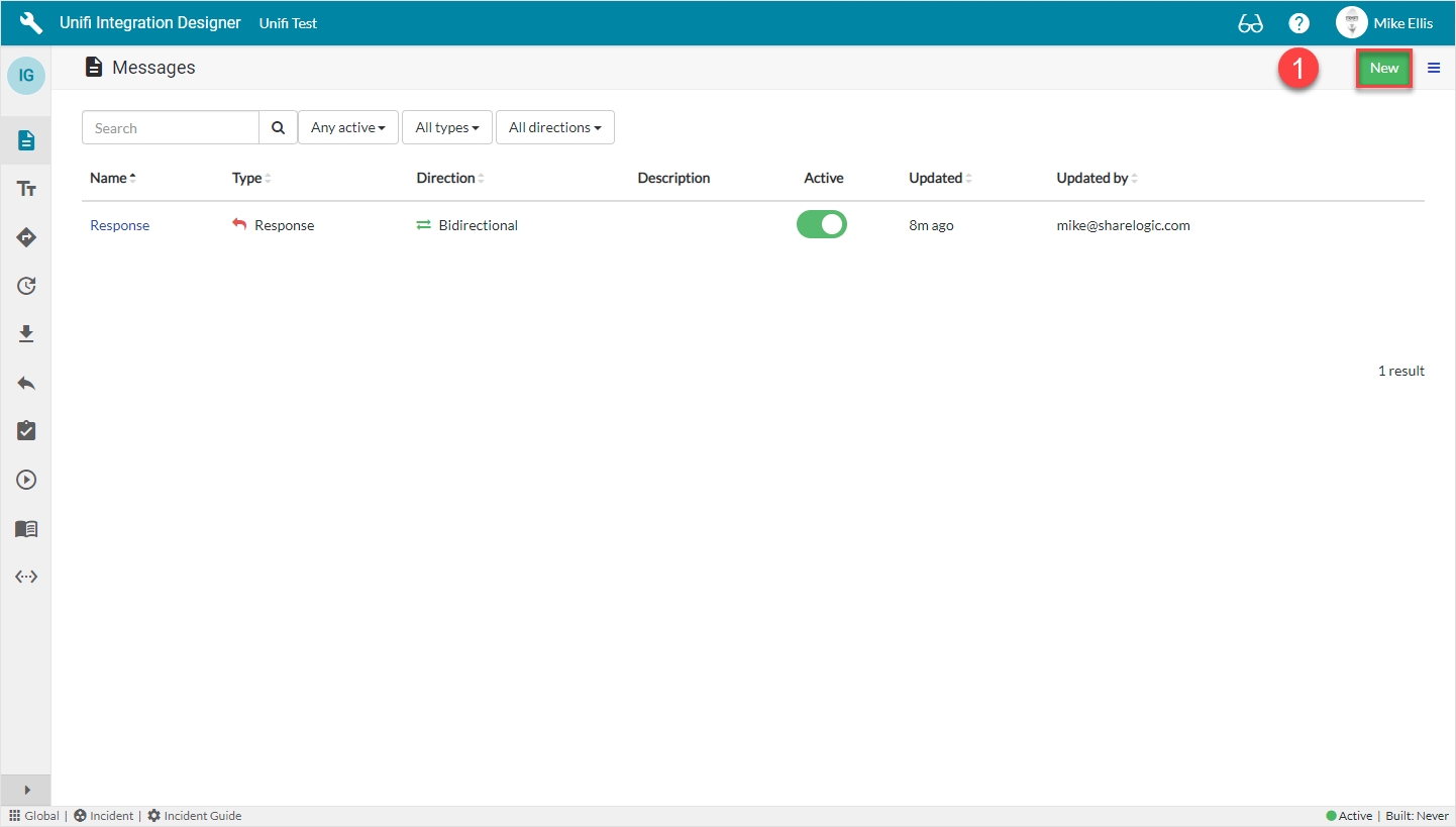 You will have been redirected to the Messages page after submitting the Response Message. If navigating from elsewhere, click the 'Messages' icon and you will see the following screen (note: the previously configured message is visible in the list):