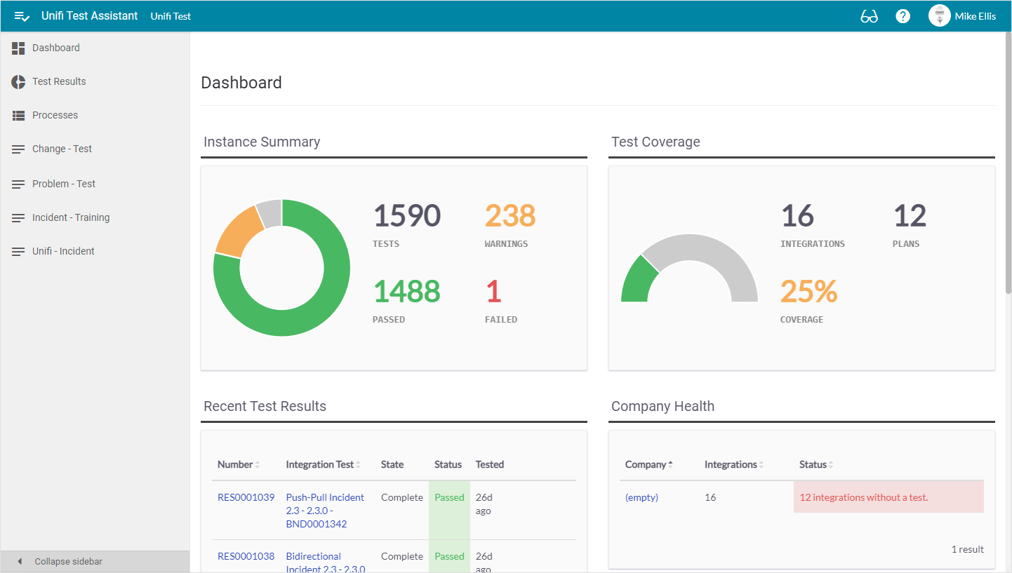Use the Unifi Test Assistant portal interface to run and view the results of end-to-end automated Integration Tests (testing the Unifi process).