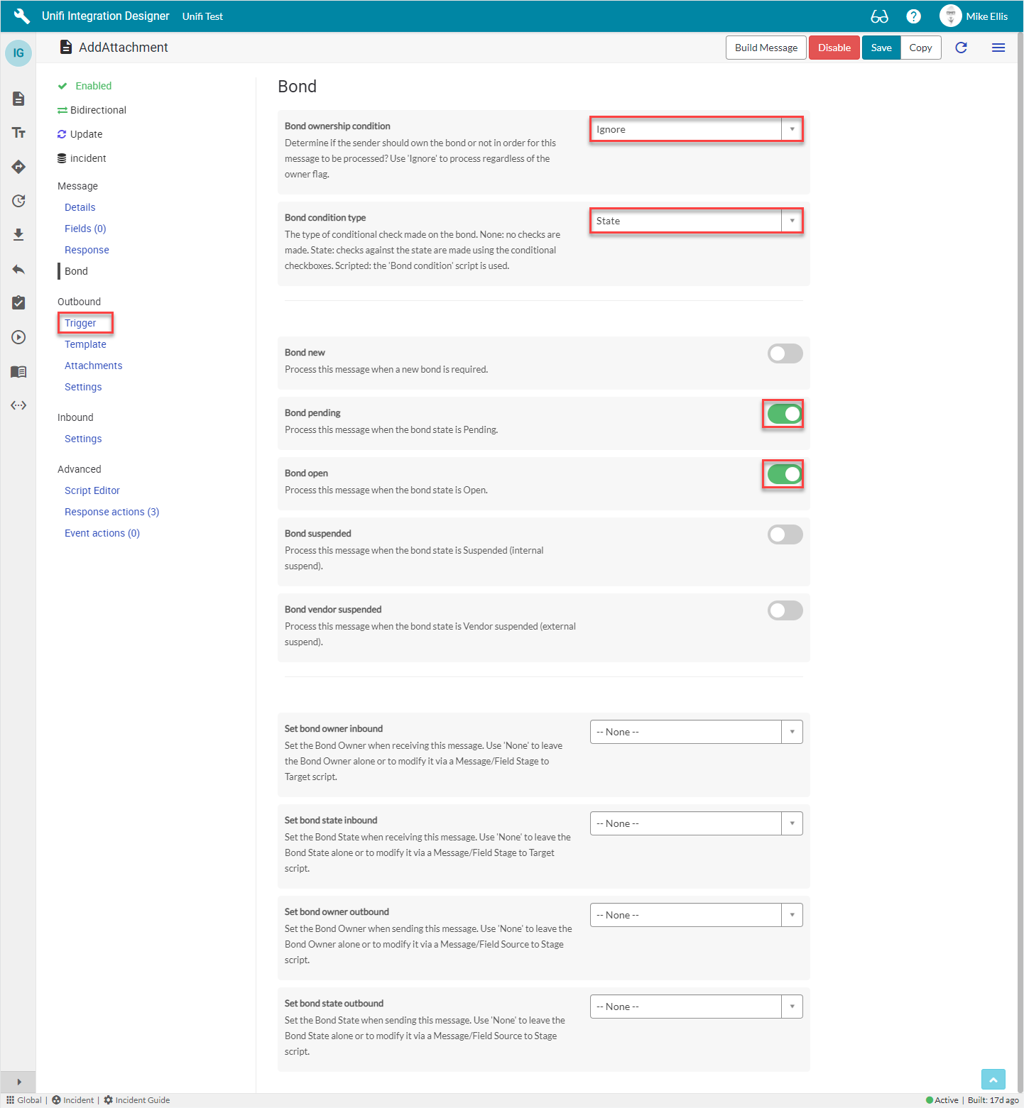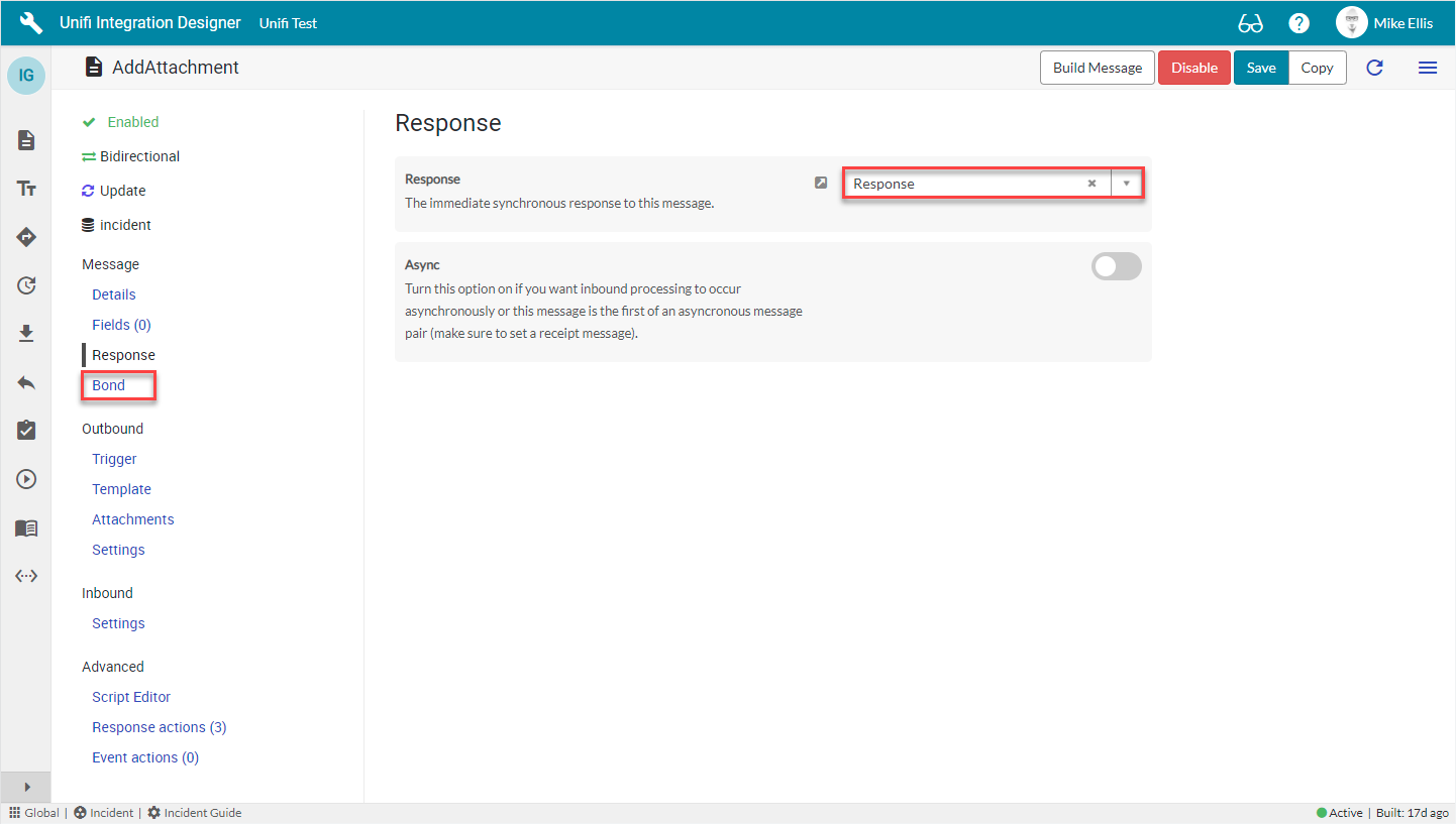 It is not always necessary for you to enter a condition. The value given is an example. You may create any condition (or not) to align with your business process requirements. In this case, it makes sense to set the Outbound Condition to false because we do not want Unifi to send this message on any update of the source record. Typically, we would configure different messages to align with state changes (e.g. Close, Resolve).