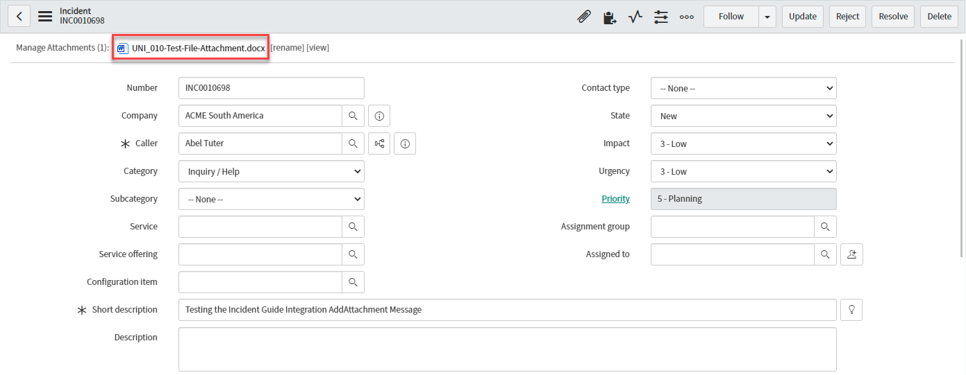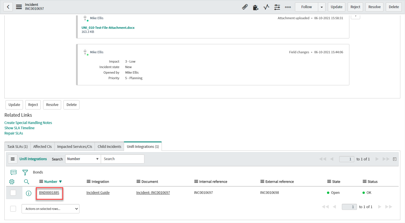 In the receiving instance, navigate to the corresponding bonded ticket and verify the attachment has been added to the record.