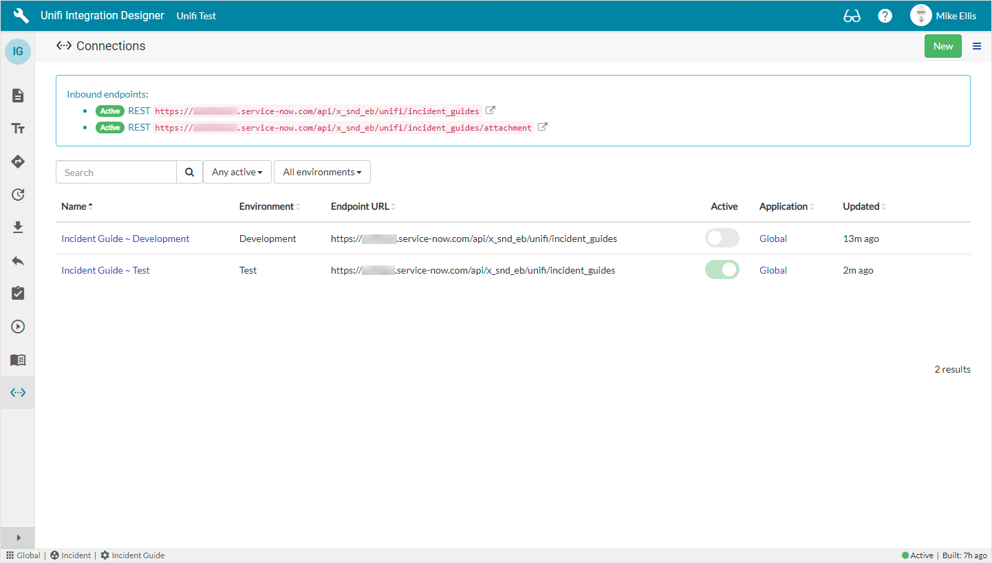 There will now be both a Development and a Test Connection for your Integration. Only the Test Connection should be Active.