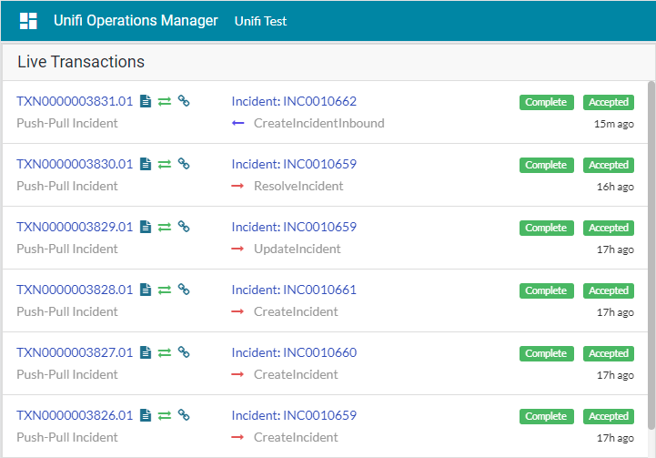 View the Transactions that have been sent. This can be done either in Native ServiceNow, or in Unifi Operations Manager.