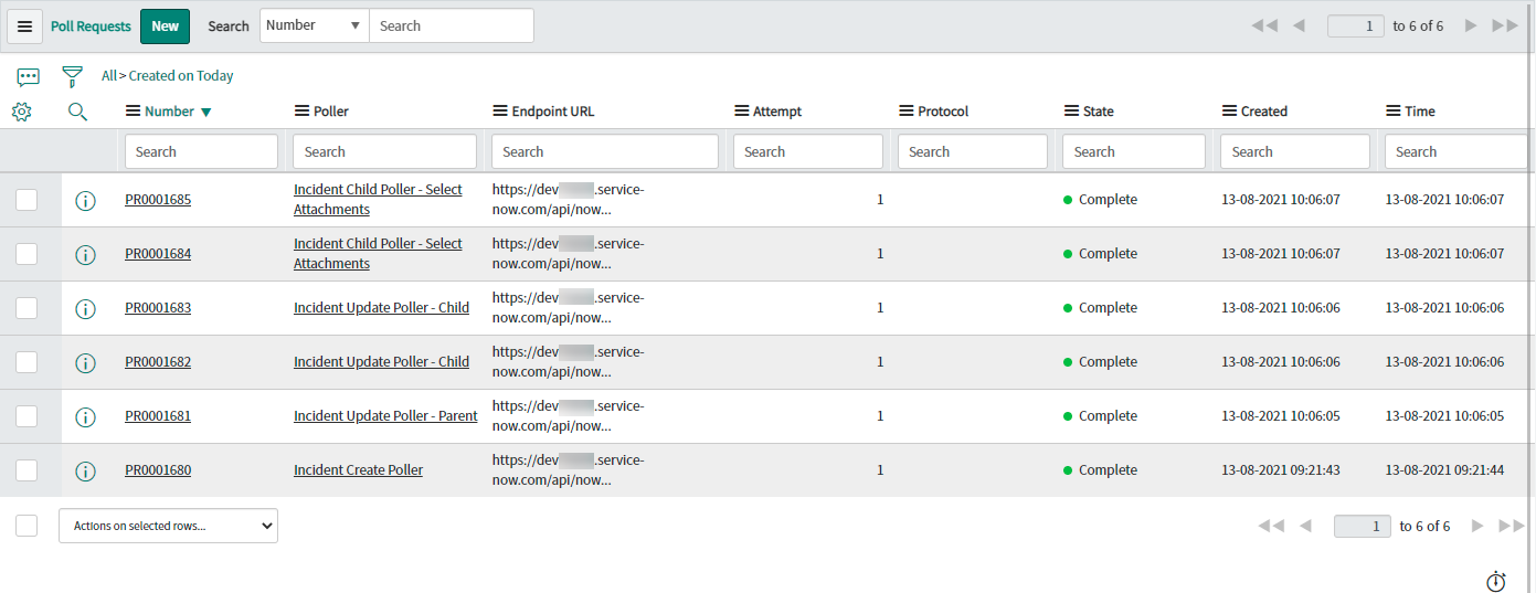Open the corresponding Parent Poll Request & confirm that both Incidents were found (and only those) and that subsequent child Poll Requests were also triggered: