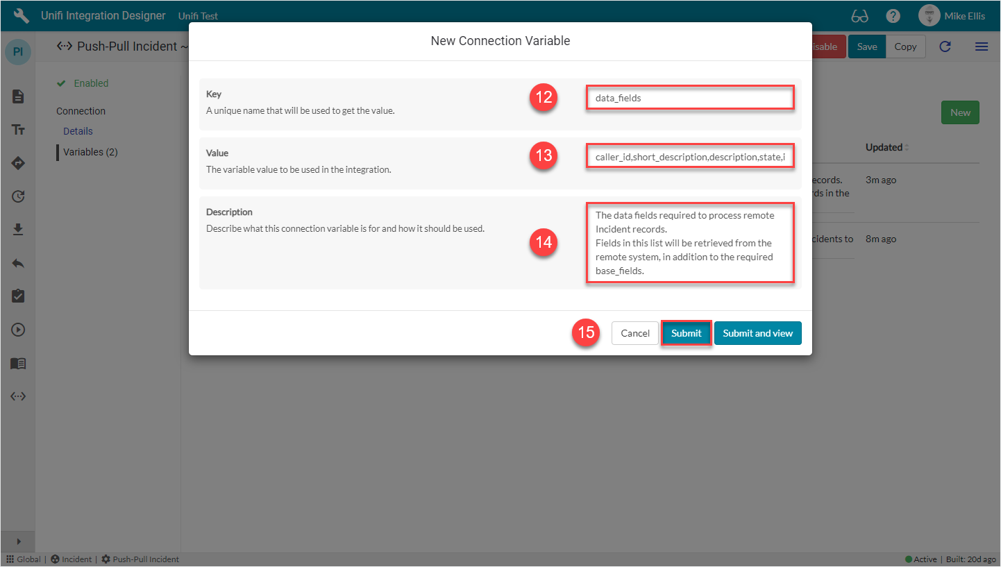 We will use Connection Variables to identify which Assignment group to look for and which field elements to return data from when polling.