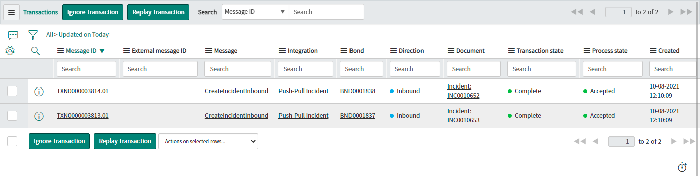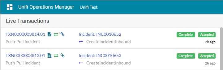 View the Transactions that have been sent. This can be done either in Native ServiceNow, or in Unifi Operations Manager.