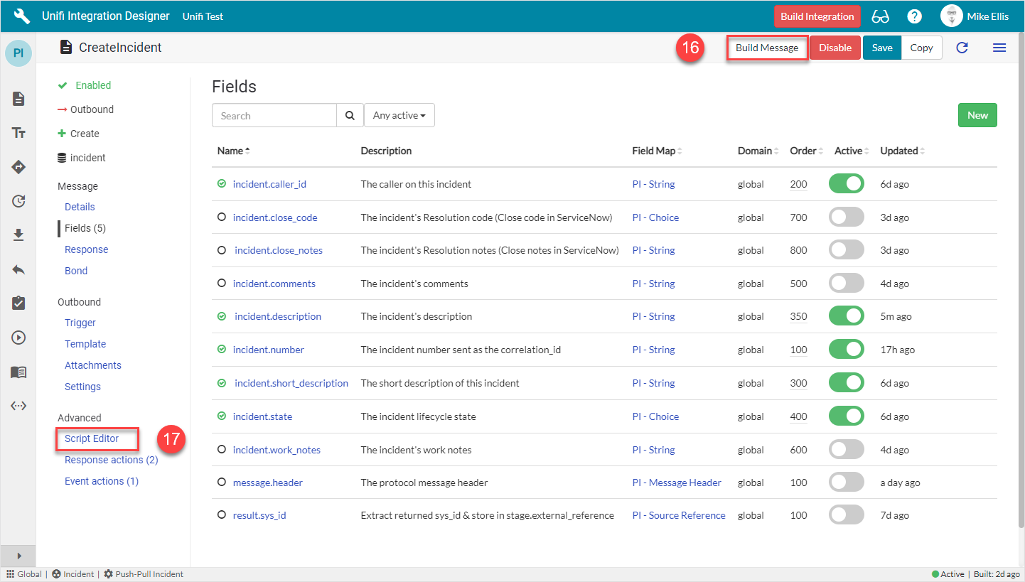 Now that we’ve configured the Field records for the CreateIncident message, we are ready to build our message scripts.