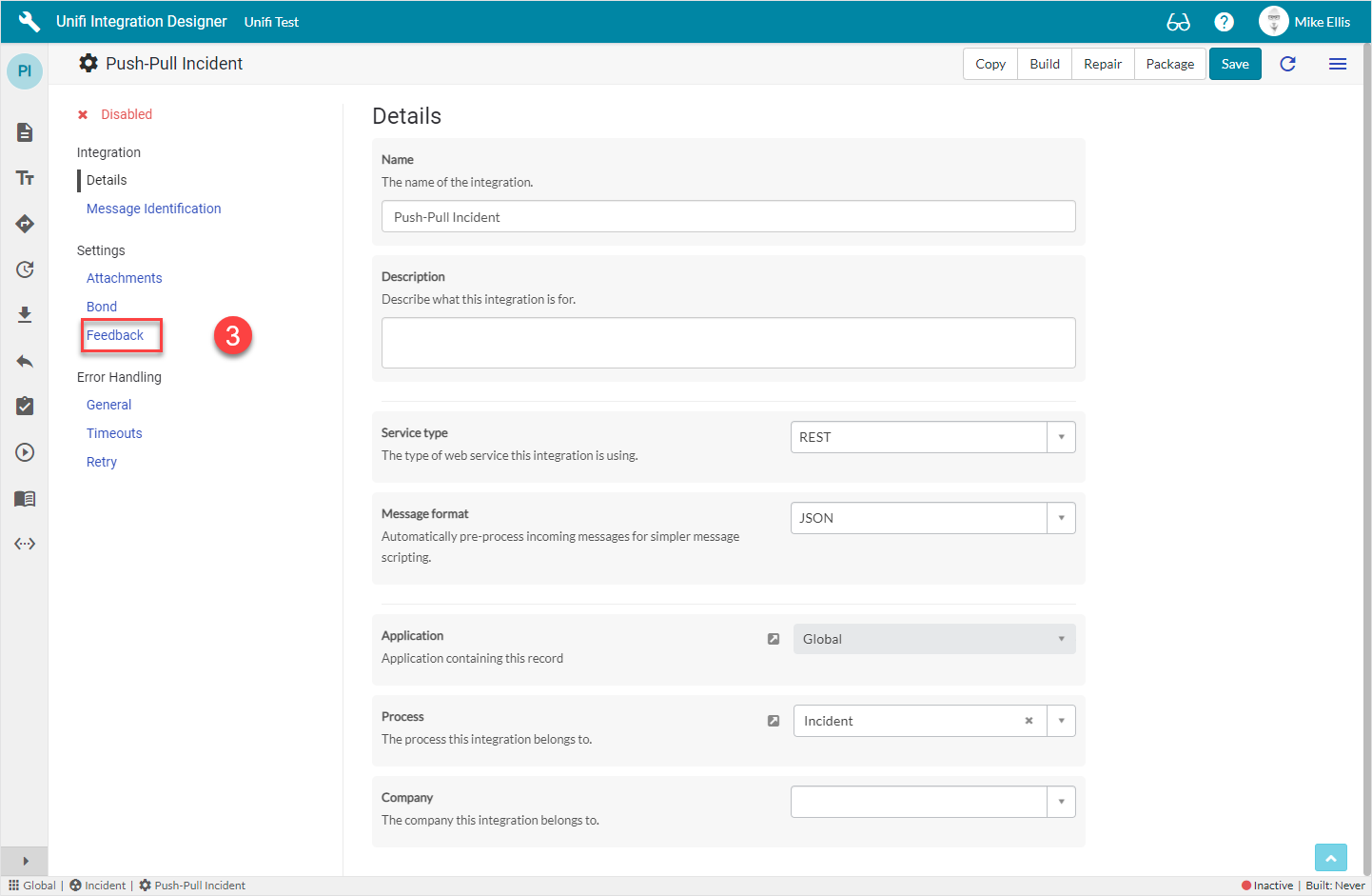 The Feedback fields to be configured for the Integration record are as follows: