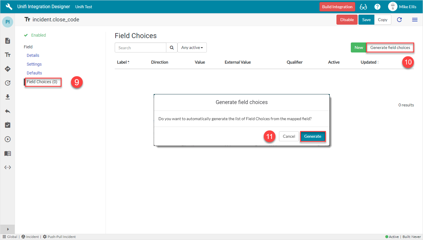 We will need to 'Generate field choices' for this Integration level Choice 'type' Field.