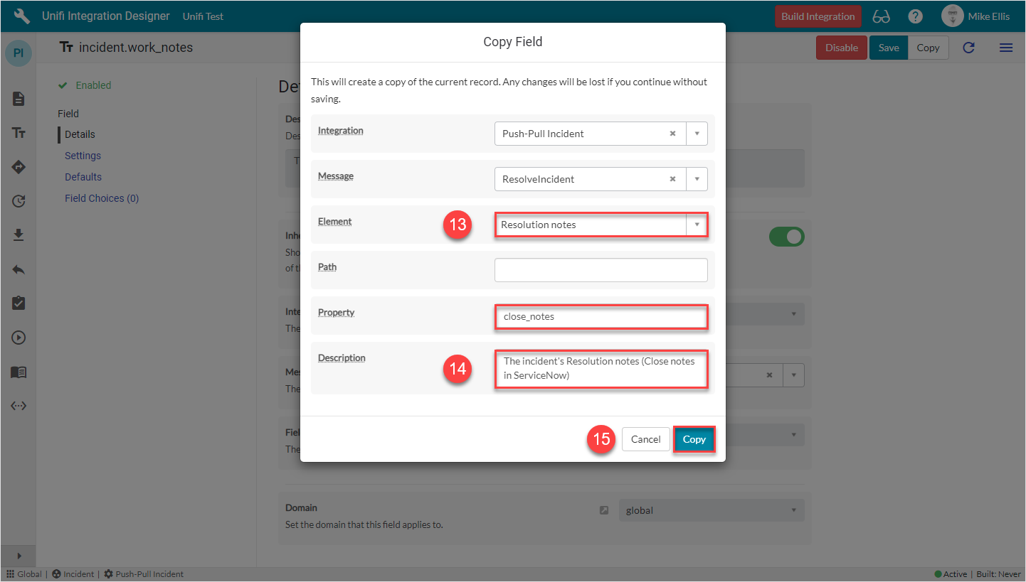 Your 'incident.close_notes' Copy Field modal should look like this: