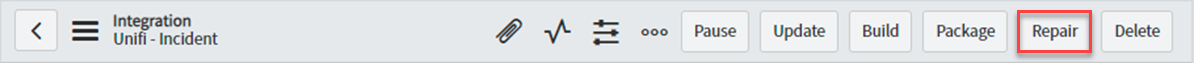 Hints & Tips: It is possible for Unifi to be proactive and raise Incidents about Integrations (see Event Actions). In such a case, the repair functionality could be tied to the resolution of the Incident, whereby Unifi automatically runs 'Repair' on the Integration the Incident was raised against.
