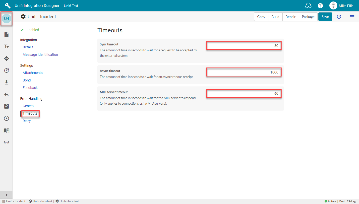 The Timeout fields that can be configured for the Integration are as follows: