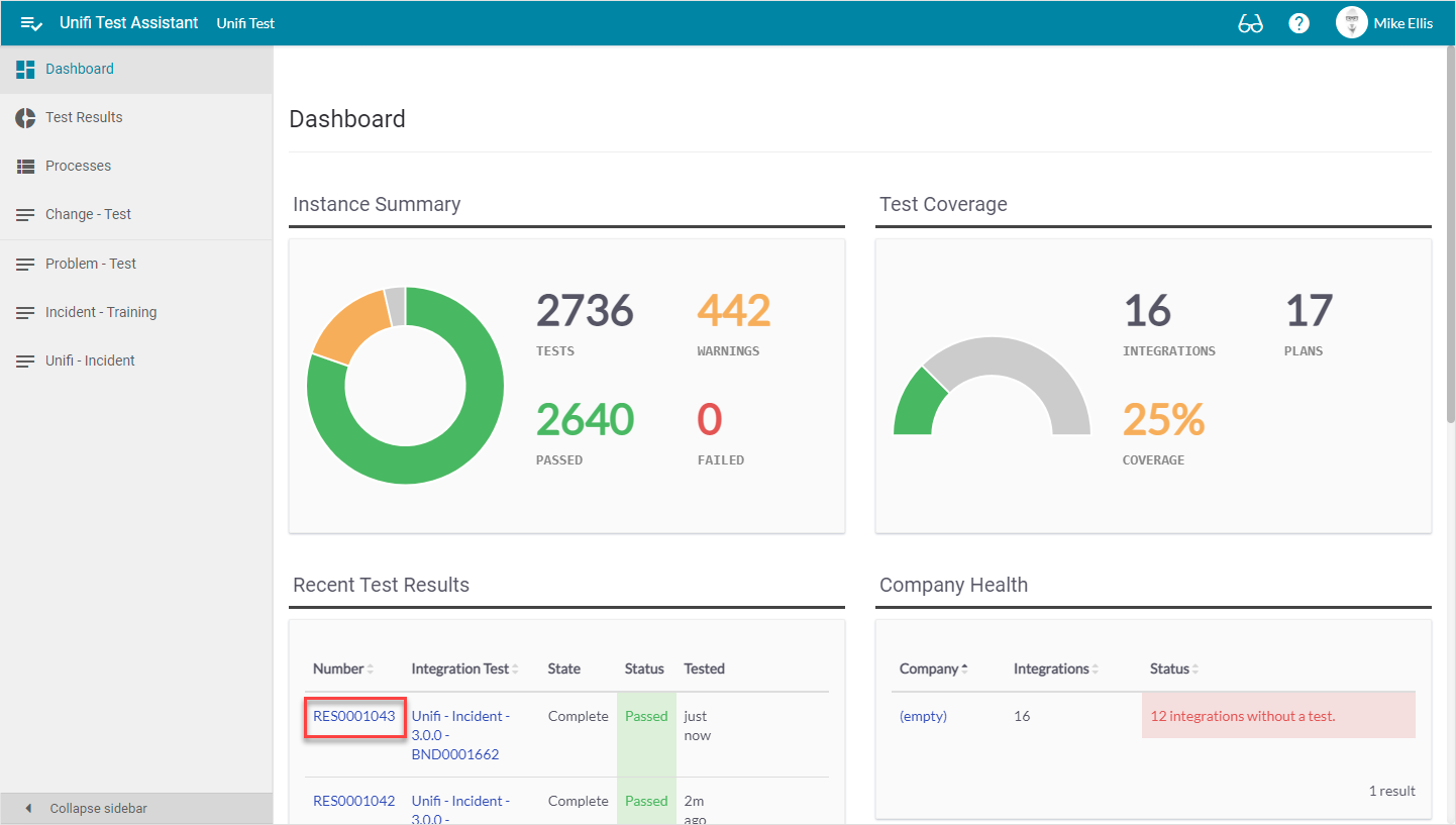 Whilst Test Results can be viewed from native ServiceNow, it is envisaged that tests will be run and the results subsequently viewed from Unifi Test Assistant.