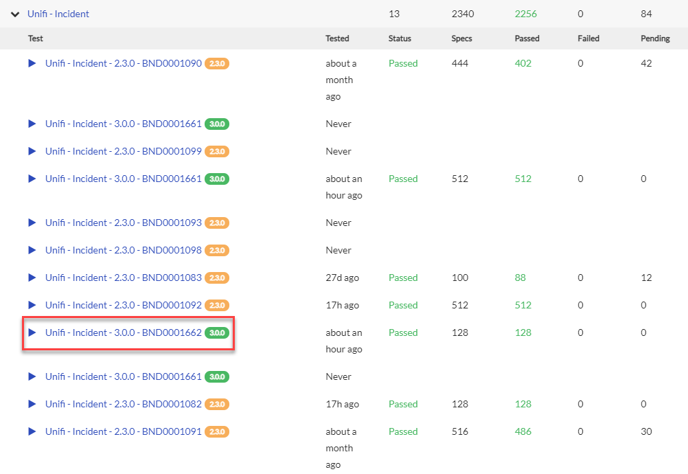 Navigate to Unifi > Testing > Test Results to open a list view, then click to open the desired result .