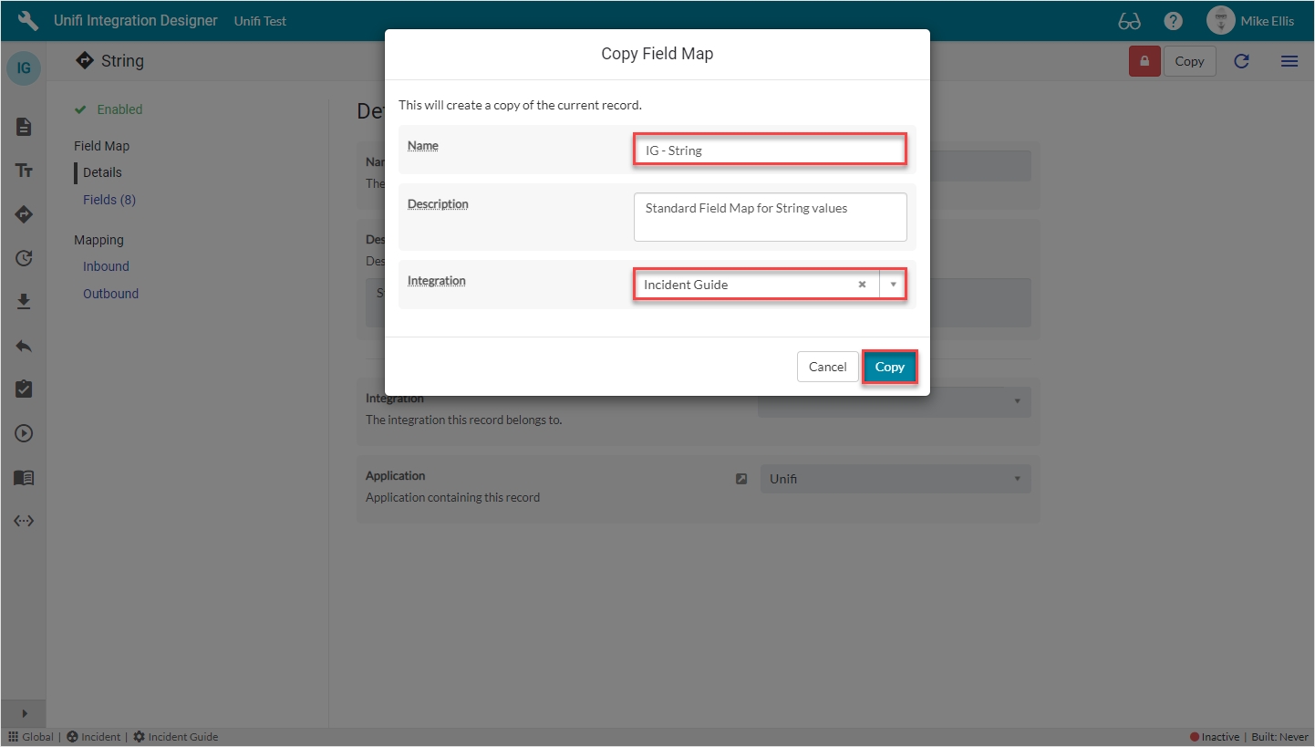 On the Copy Field Map modal, update the Name and Integration as appropriate & click Copy.