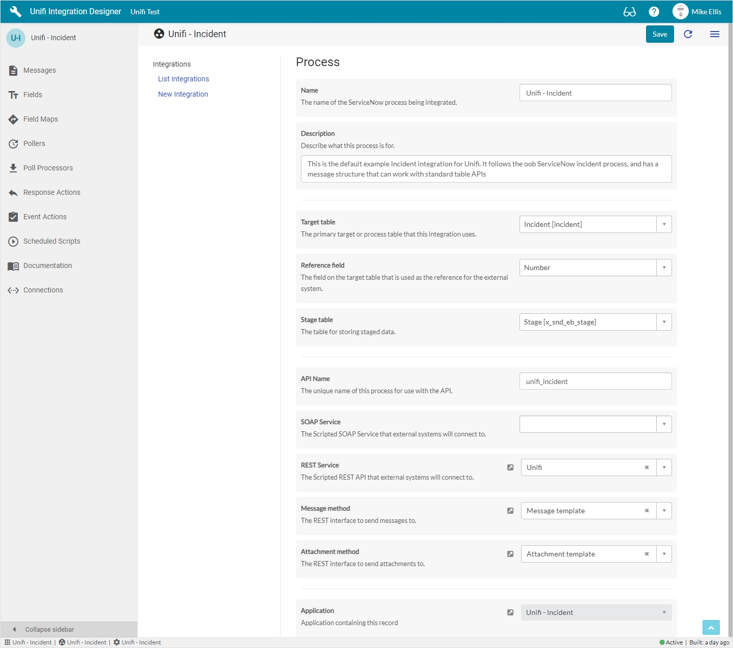 Process is at the top of the configuration chain in Unifi. It is a mechanism which provides functionality not normally found in ServiceNow. The purpose of a process is to keep like integrations in one place (e.g. Incident process integrations, or Change process integrations).