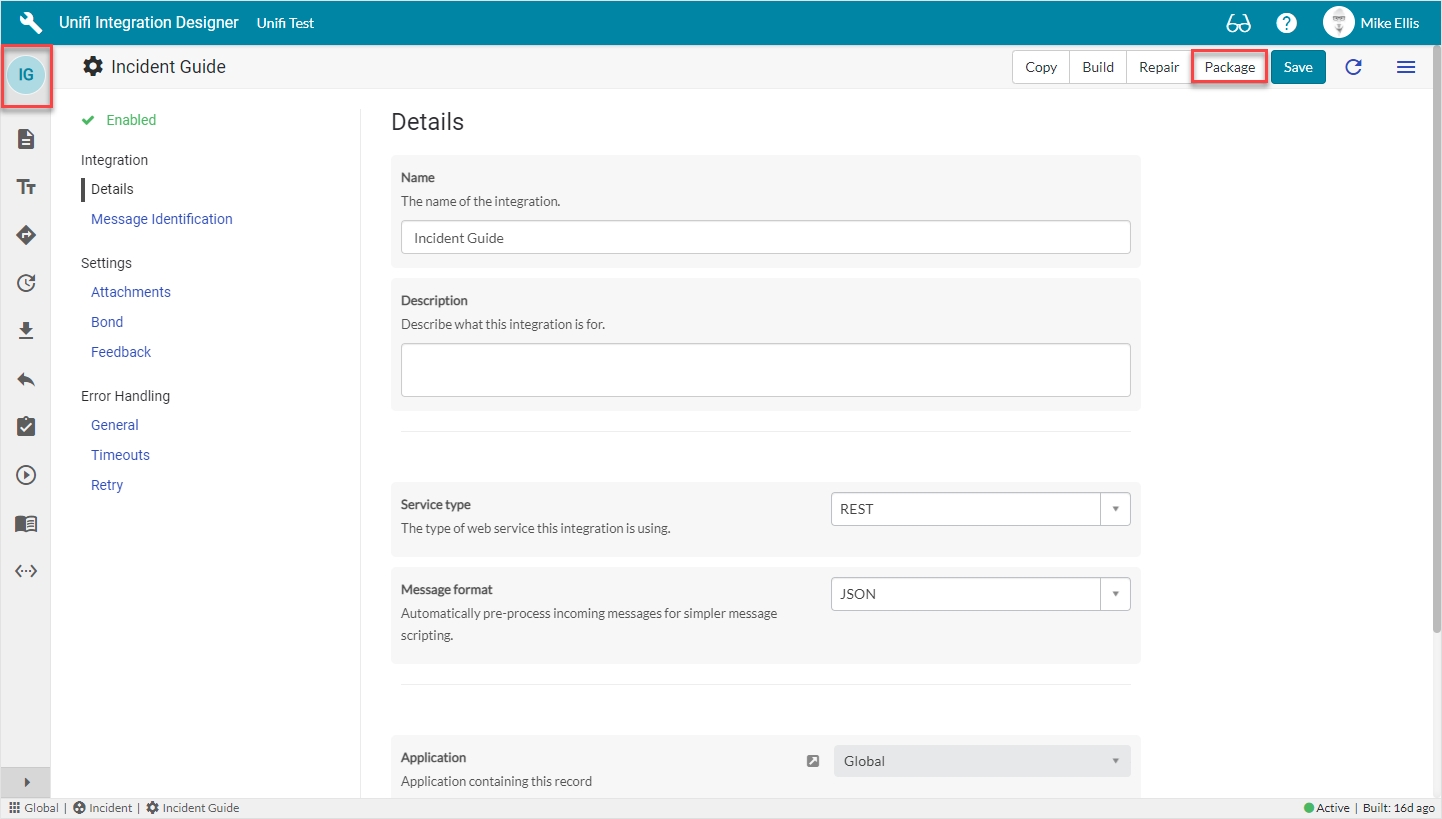 Follow these instructions to Package your Integration, ready for migration between ServiceNow instances.