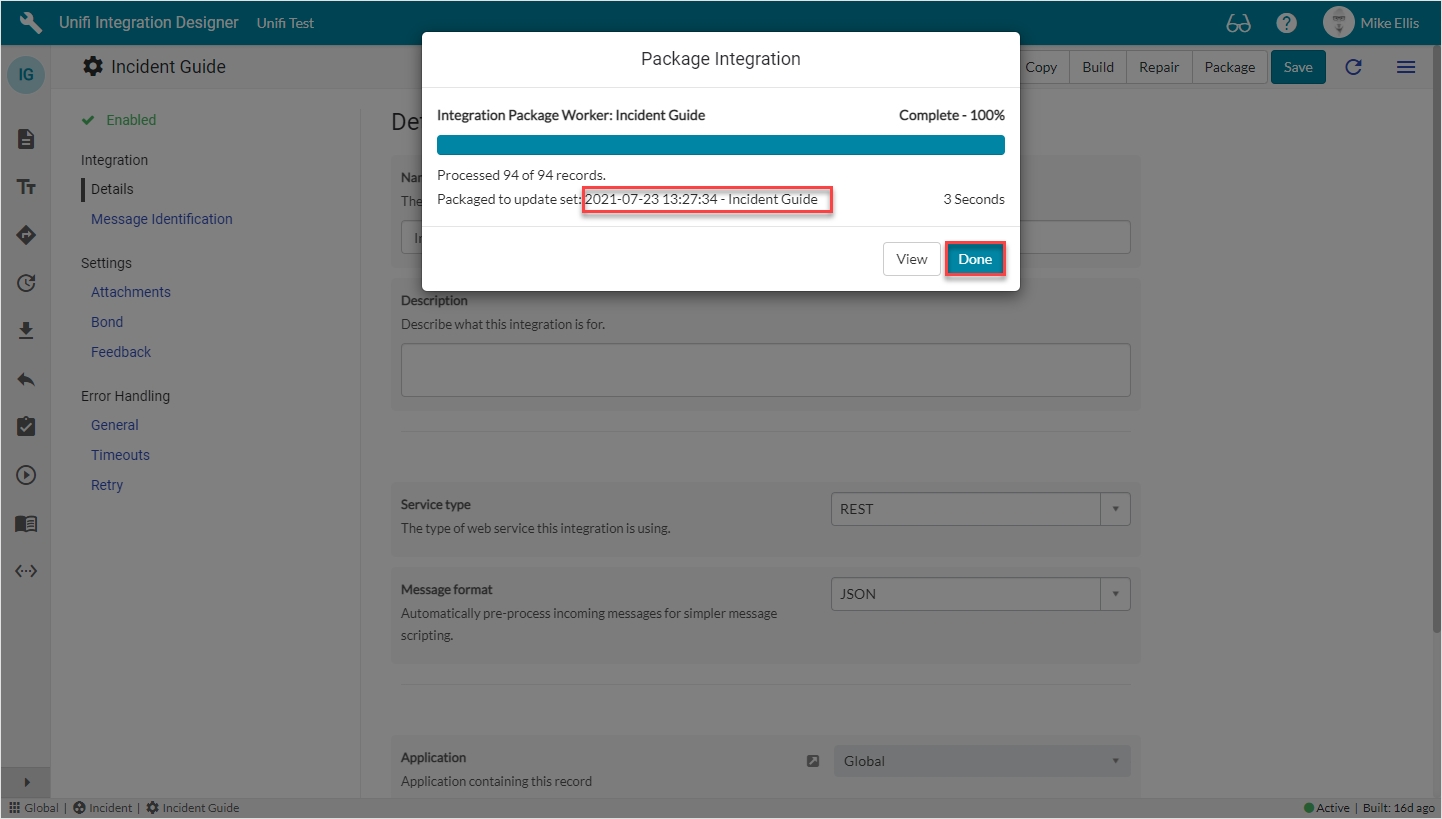 Congratulations! You now have the Update Set containing the complete Integration available to be imported to your other instance.