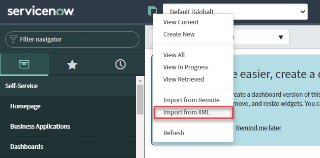 At the bottom of the Retrieved Update Sets list, click the Import Update Set from XML related link.