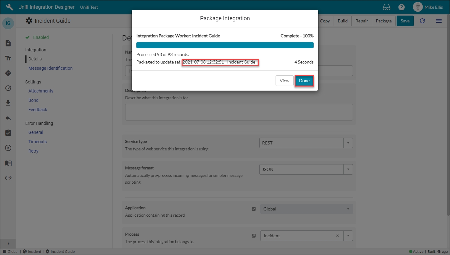 Unifi packages the Integration into an Update Set which is automatically downloaded.