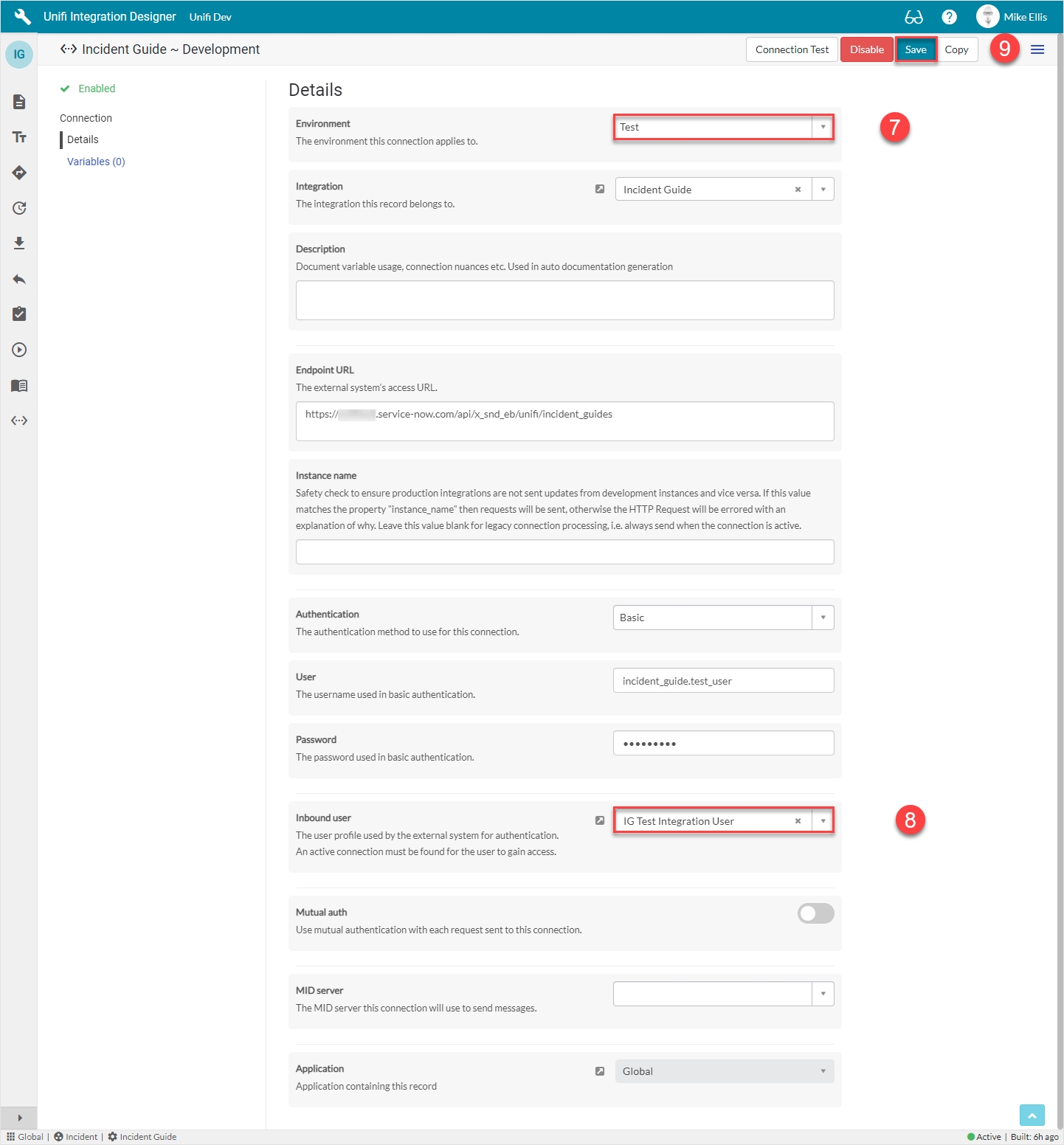 We are going to edit the existing 'Development' Connection so that it will become our 'Test' Connection and use the Inbound user just created.