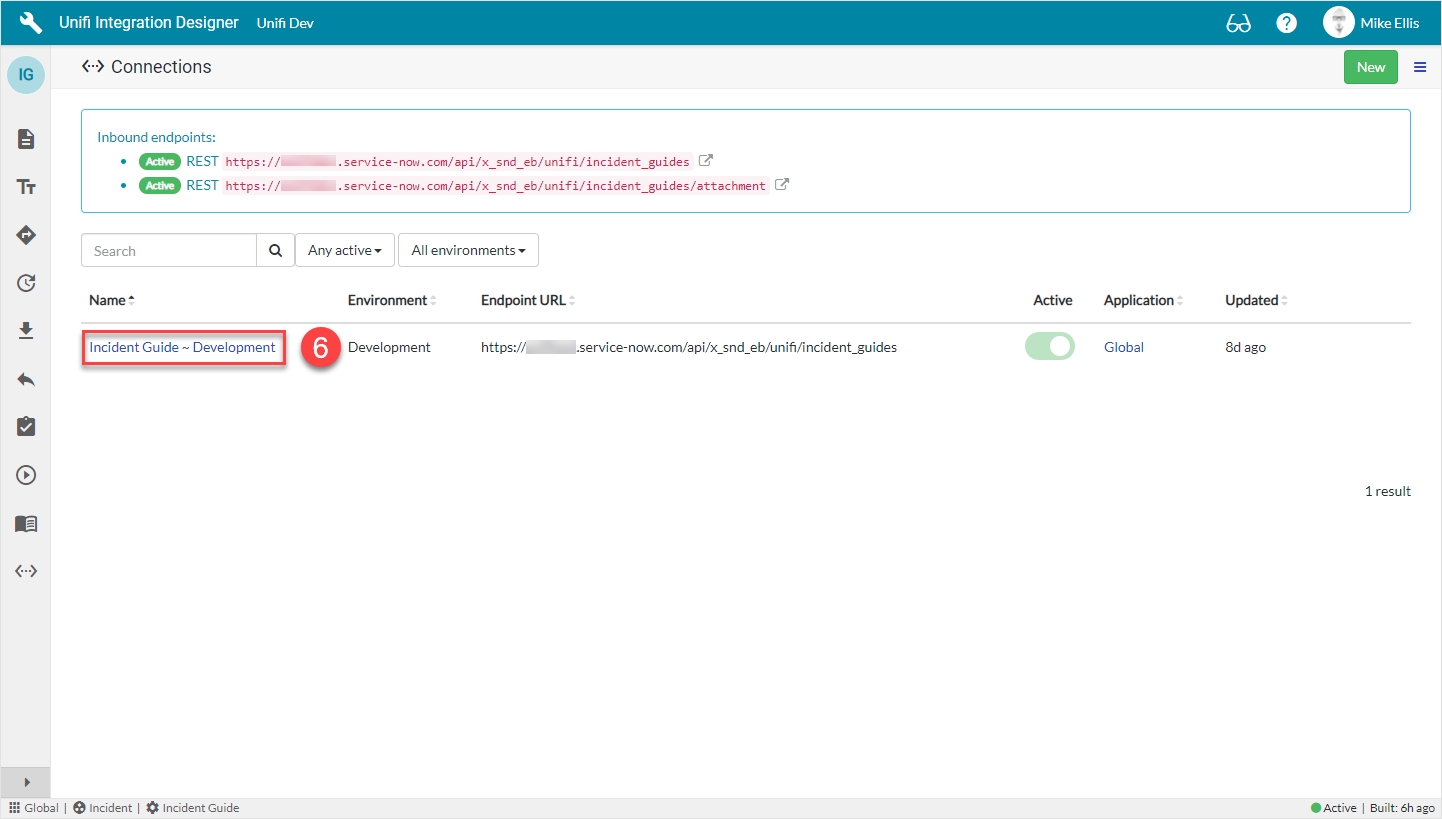 There will now be both a Development and a Test Connection for your Integration. Only the Test Connection should be Active.