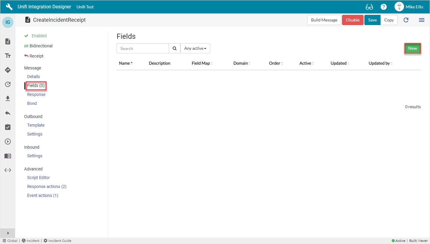 We will utilise the Field & Field Map records to configure the Message Scripts for the CreateIncidentReceipt Message.
