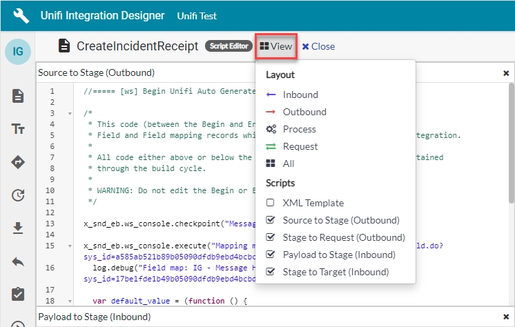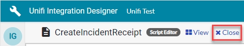 (Old pre-existing code will appear here)Once you have finished examining the code, click 'Close' to navigate back to the Fields page of the CreateIncidentReceipt Message.