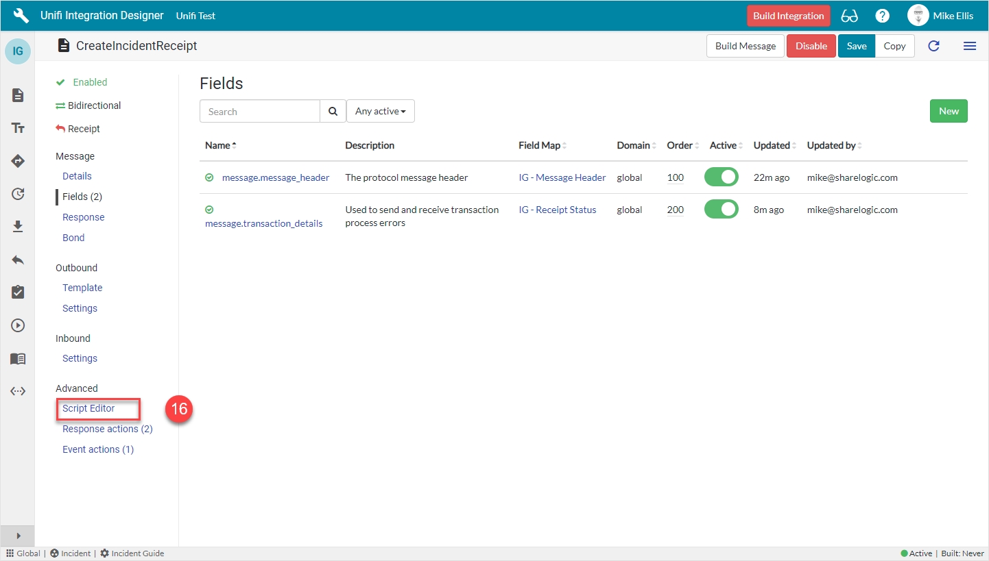 Now that we’ve configured the Field records for the CreateIncidentReceipt message, we are ready to build our message scripts.