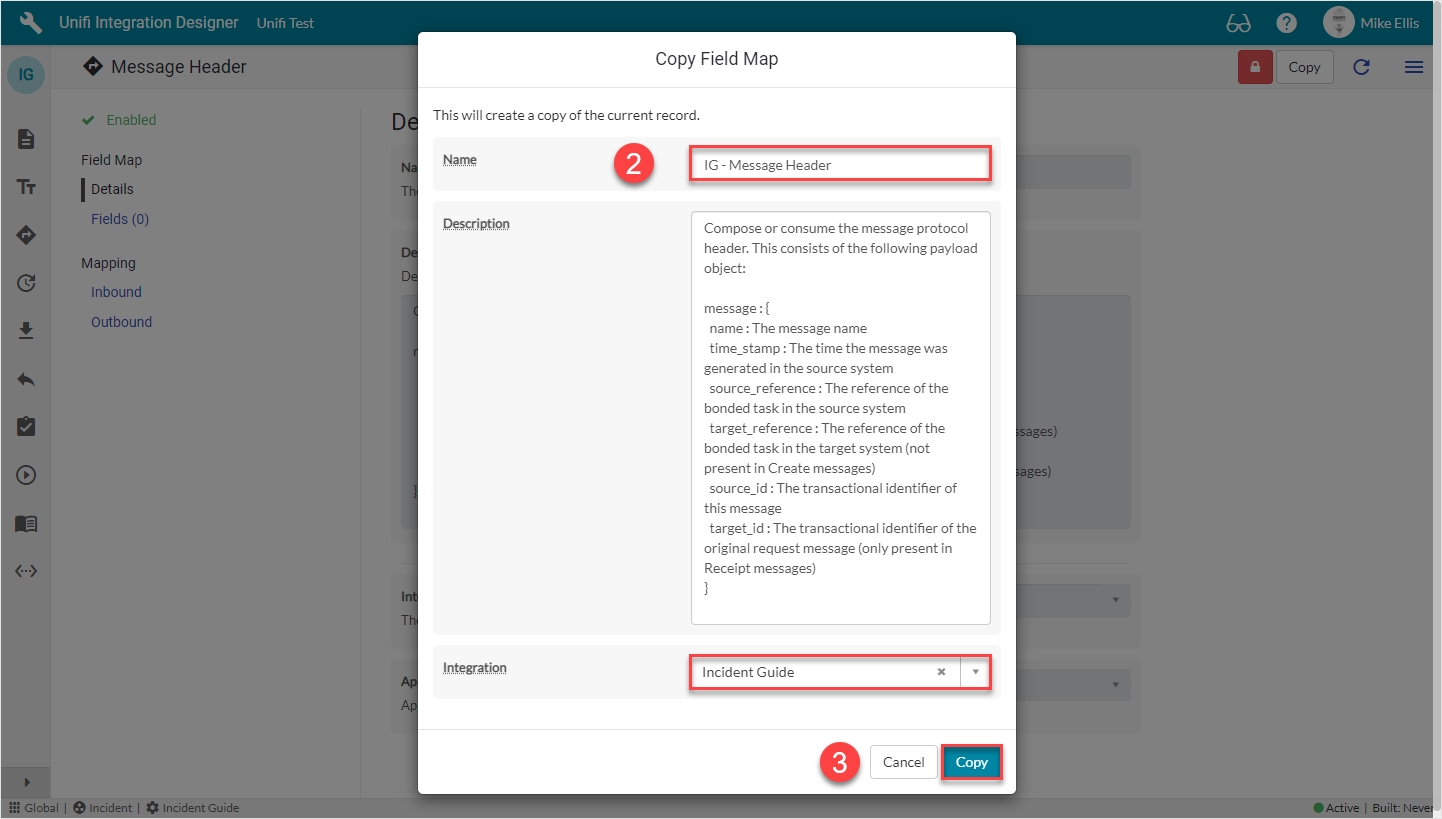 Click on the ellipsis to the right of the Message Header Field Map & then click Copy.