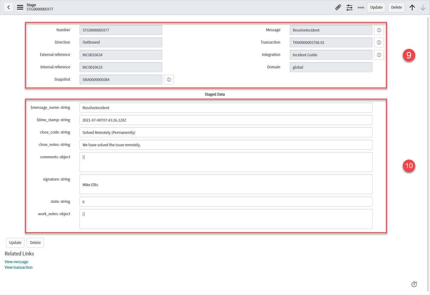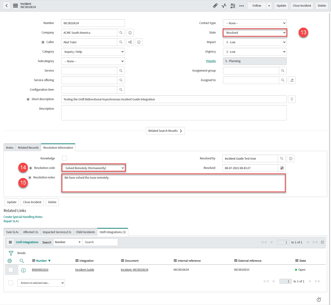 Your Incident record should look like this: