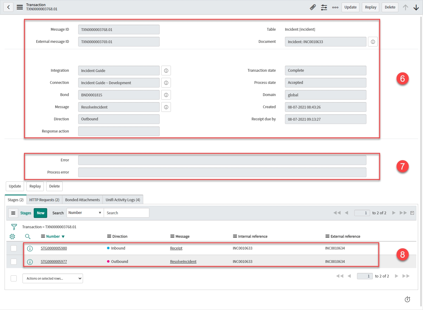 • Message: 'ResolveIncident' & 'Receipt'