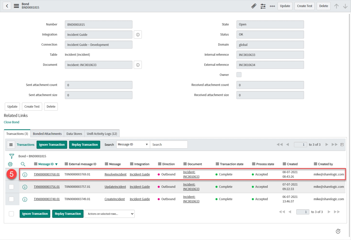 • Message: 'Resolveincident'