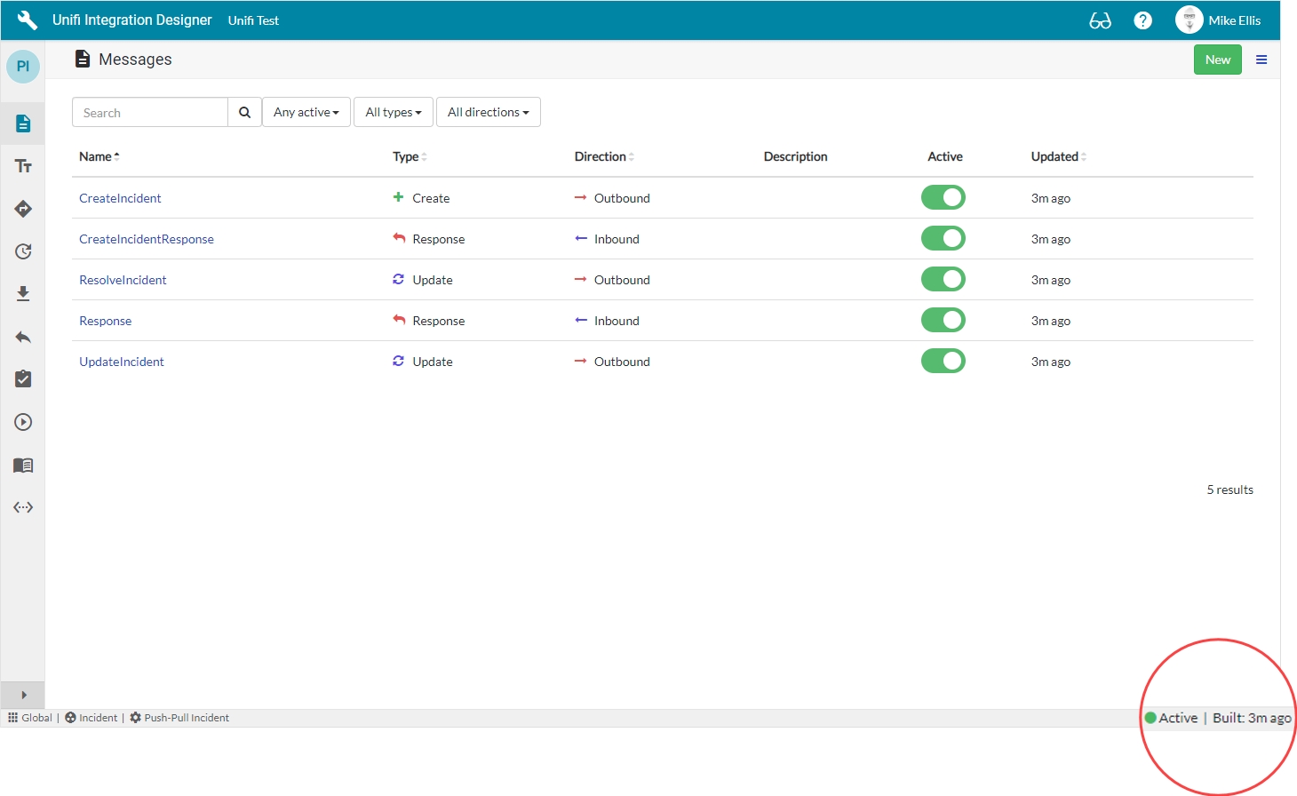 As mentioned in 'CreateIncidentResponse Fields', we saw that a 'Build Integration' button had appeared in the banner at the top of the page. This was because, whenever a change is made to a Field record that is associated to a Message (whether that is being created, updated, or deleted) the button will be available and act as a visual reminder that changes have been made and Message Script(s) need to be built.