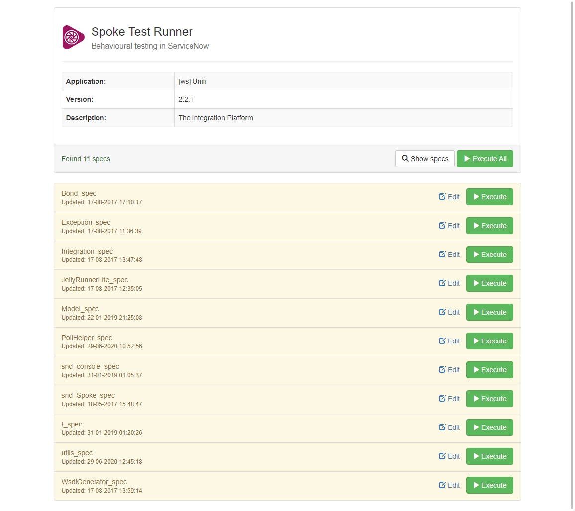 The Self-test module is a link to a suite of internal tests that can be run at any time. The tests can be executed either individually, or all all together.