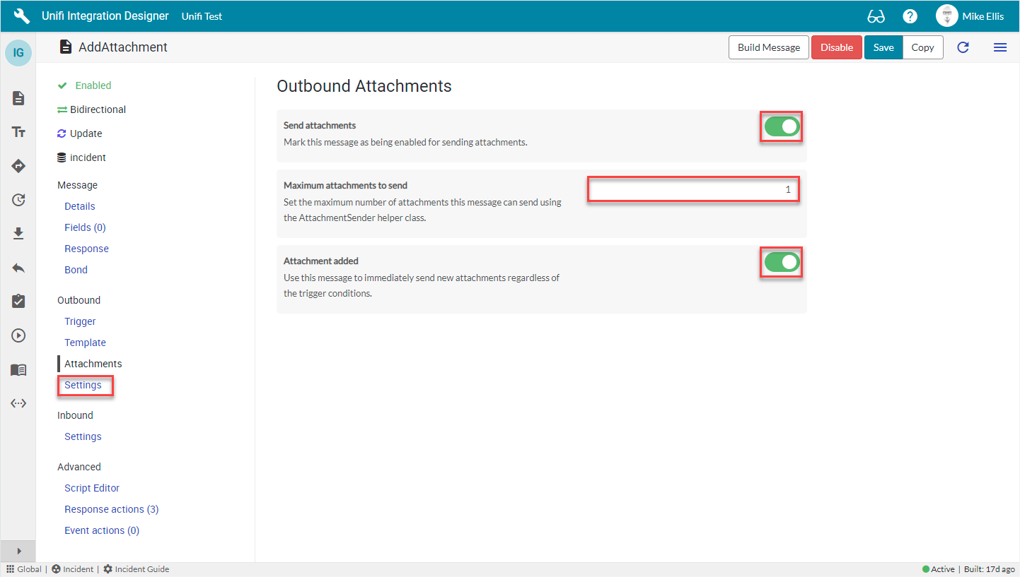 The Outbound Attachments fields to be configured are as follows: