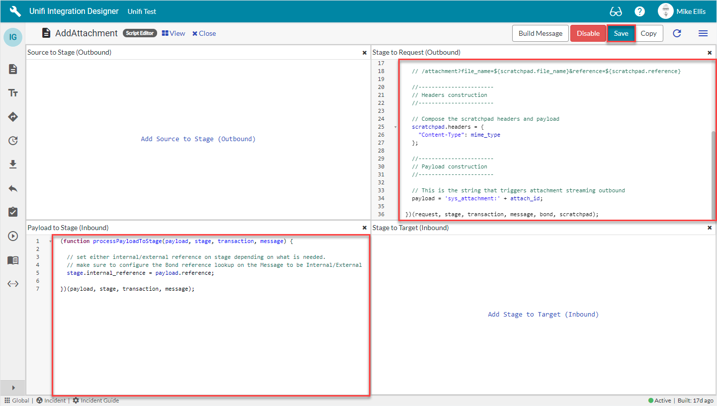 The code in the ‘Payload to Stage’ script field should look like this: