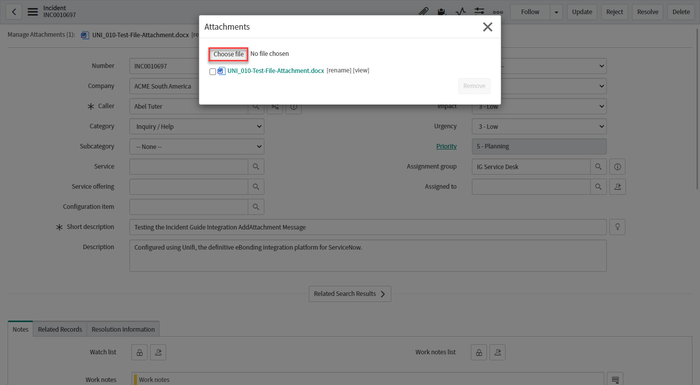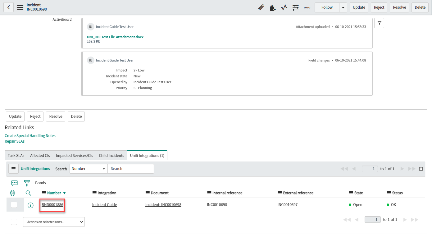 In the receiving instance, navigate to the corresponding bonded ticket and verify the attachment has been added to the record.