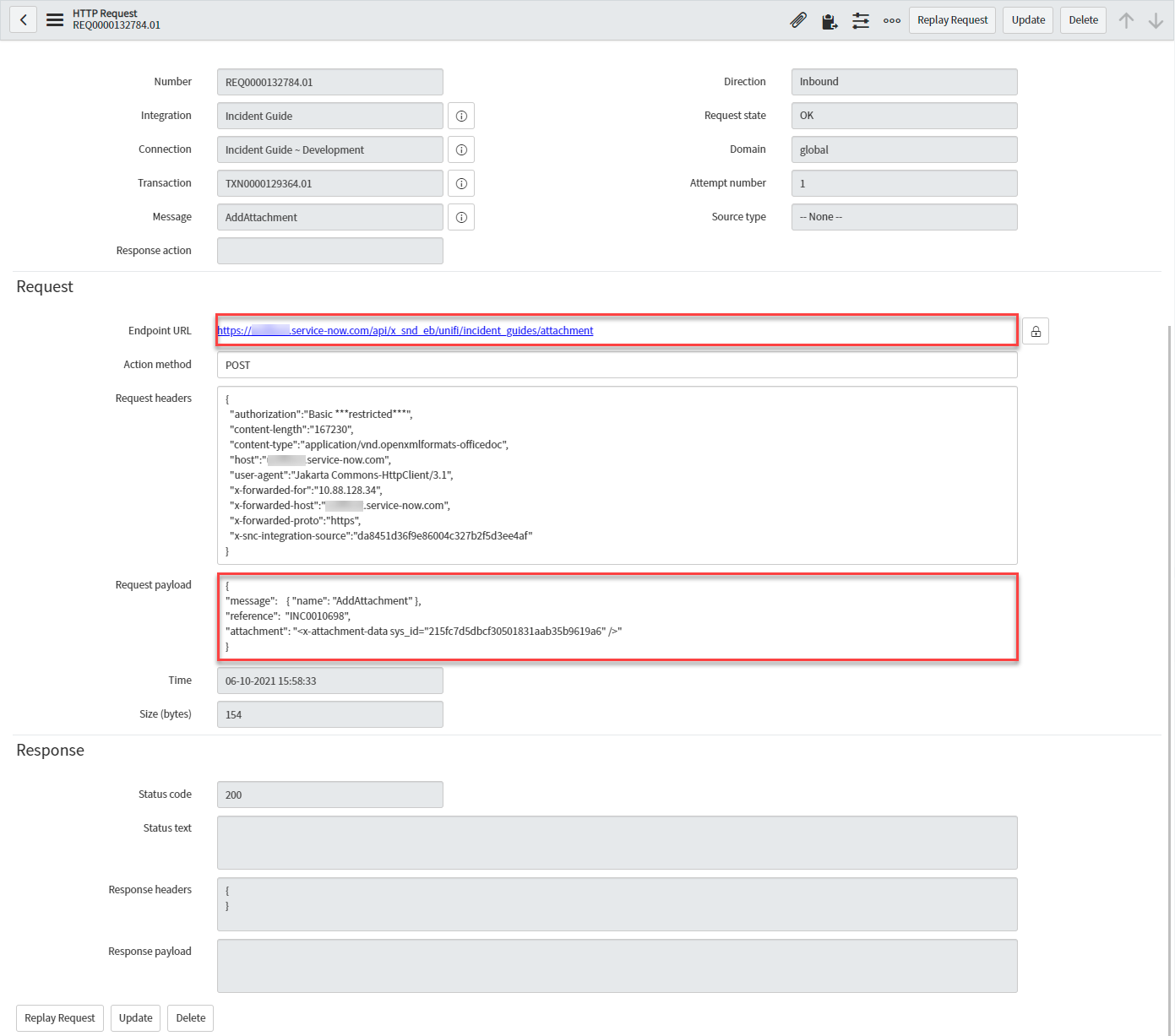 From the Transaction, navigate to the HTTP Requests related list and click to open the HTTP Request.