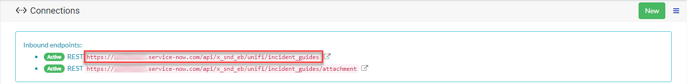 The entire Endpoint URL can be easily obtained from the automatically created Message Resource on the Unifi Scripted REST API (displayed in the widget at the top of the Connections page) in the other instance.