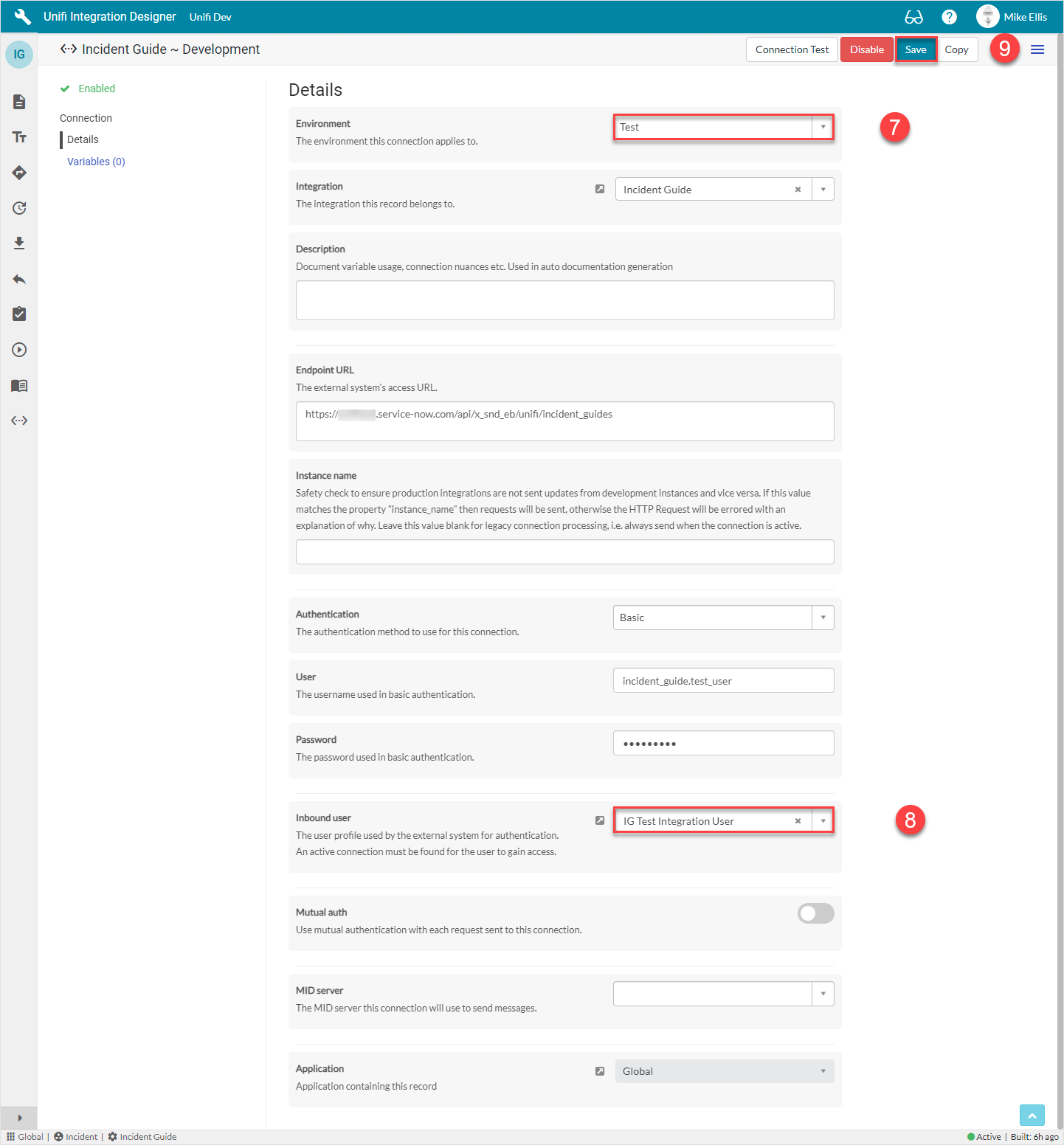 We have not updated the Endpoint URL nor the Outbound User because they already contain the correct values (i.e. the internal instance's Endpoint & Inbound user).