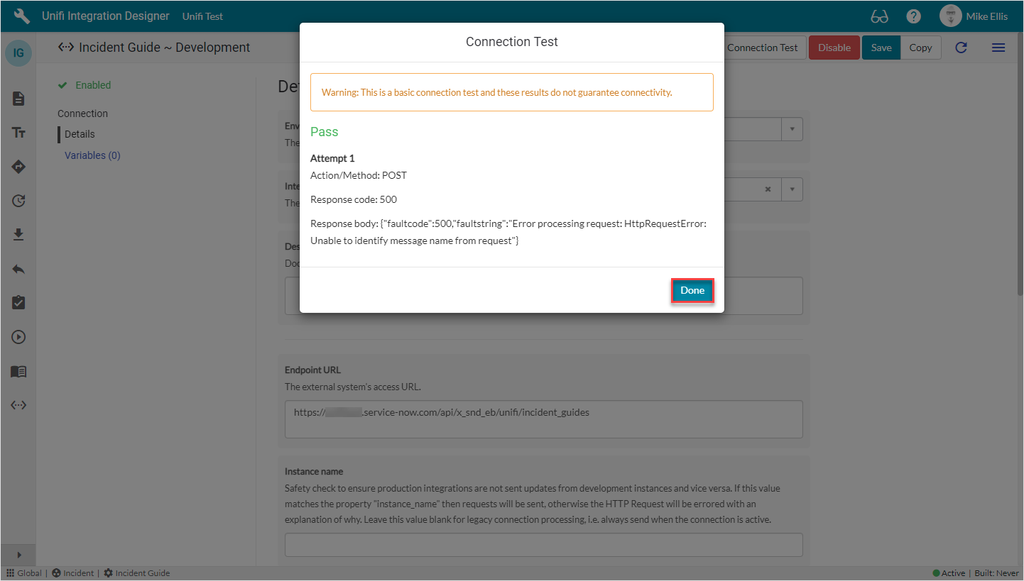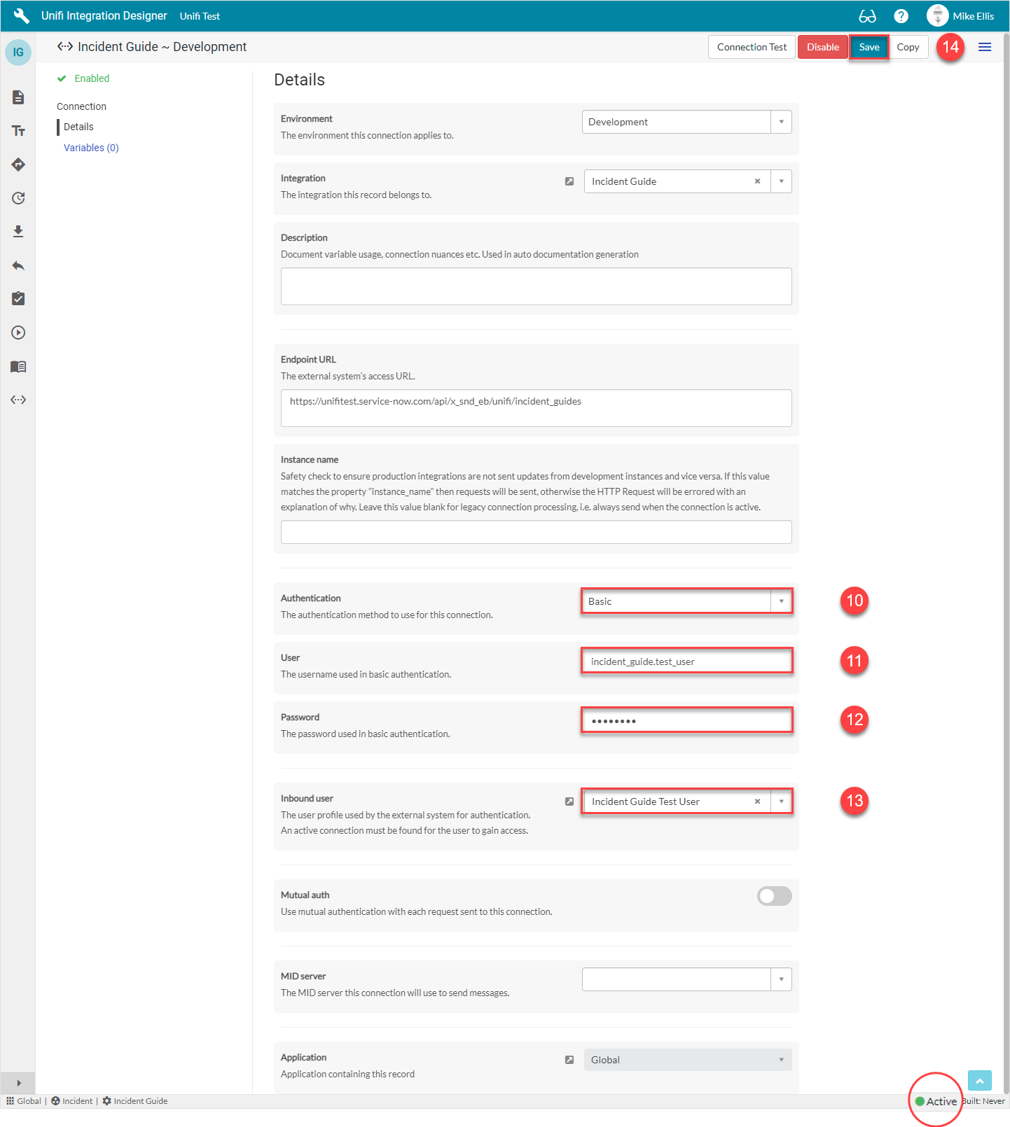 Always ensure that your Inbound User is NOT used by anyone else for the same Process i.e. if you’re creating a Connection for an Integration on the Incident Process, your Inbound User has to be the only User used by an Integration within that Process.