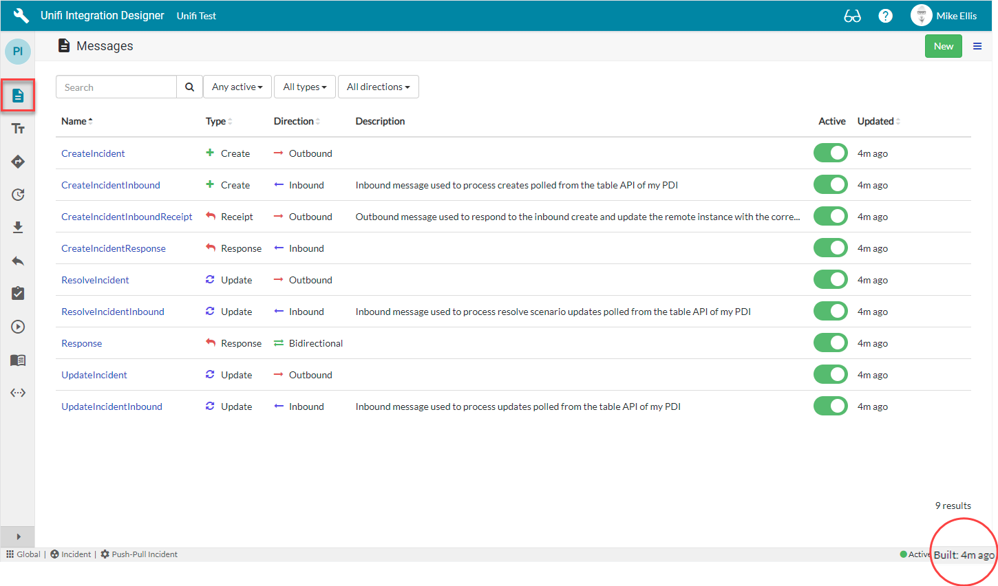 Running Build on the Integration has processed all 9 Messages (i.e. all the Messages created following the Outbound Incident Guide, Incident Update Poller Guide & Incident Multiple Message Guide as well as this Guide)