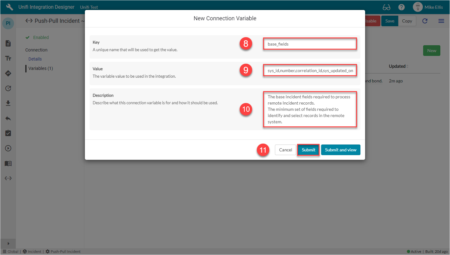 We will use Connection Variables to identify which Assignment group to look for and which field elements to return data from when polling.