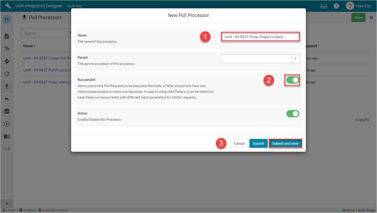 'Parent' - Once we have created the Parent Poll Processor, we can then select it here. We have not scripted any business logic to run from the value in this field. It is given for documentary purposes only.