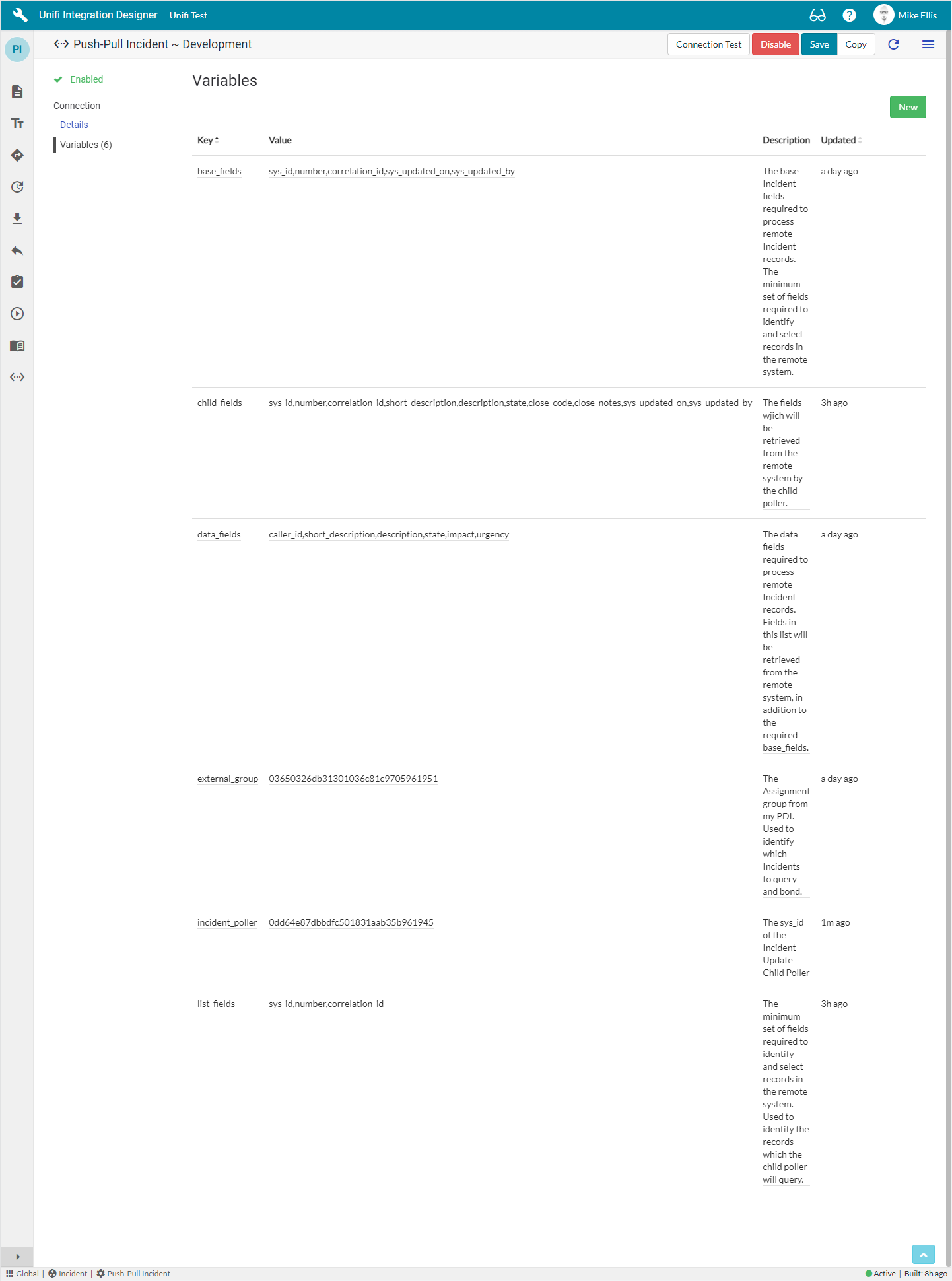 The 'incident_poller' New Connection Variable fields to be configured are as follows: