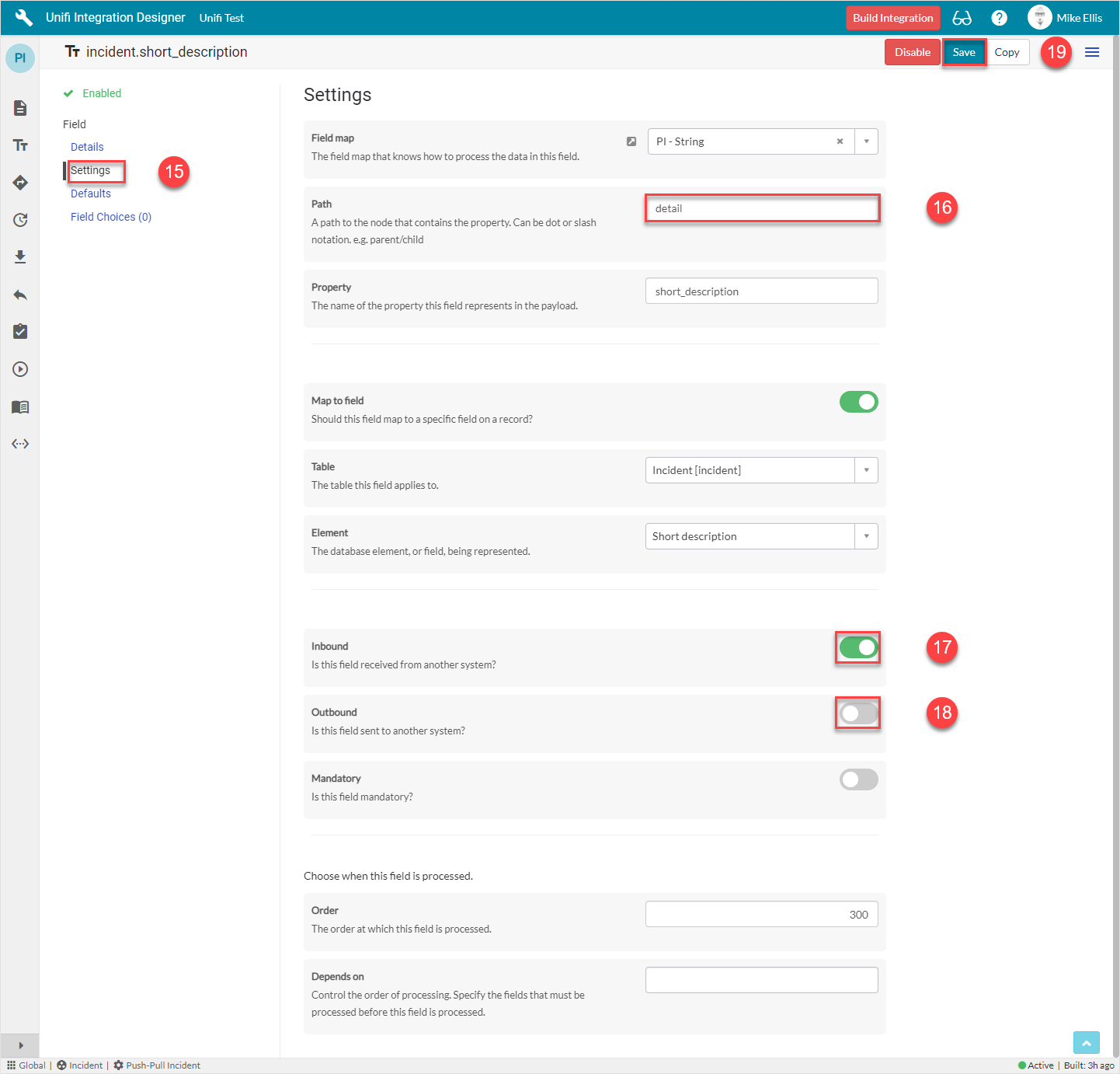 You will be redirected back to the Fields page of the UpdateIncidentInbound Message.