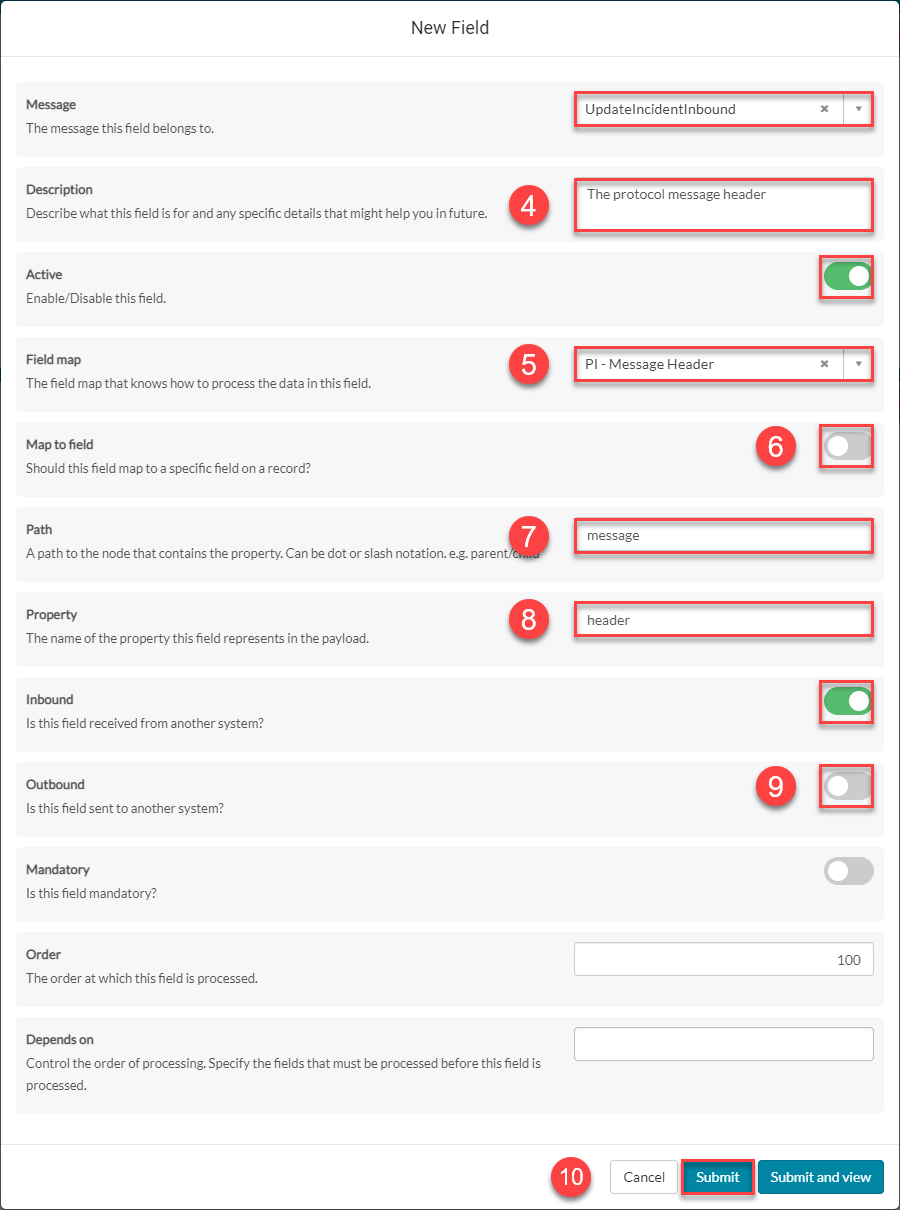 The following Field records should now be in place for your UpdateIncidentInbound messsage: