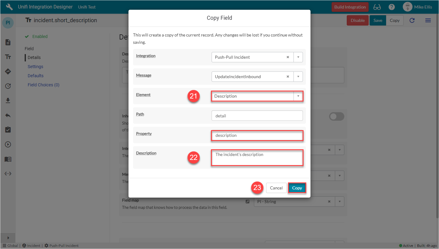 Because the incident.description Field record is the same ‘type’ (PI - String) & the majority of the settings are the same as the previously configured Field, it will be quicker to copy the incident.short_description Field & make a few minor changes.