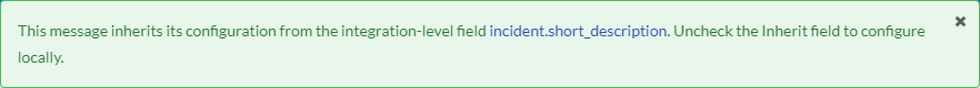 The ‘incident.short_description’ (Integration level) Field record should already be in place (i.e. with Active set to false). This was automatically created by Unifi when we first created the Message level record when completing the Outbound Incident Guide. We will now create its Message level counterpart.